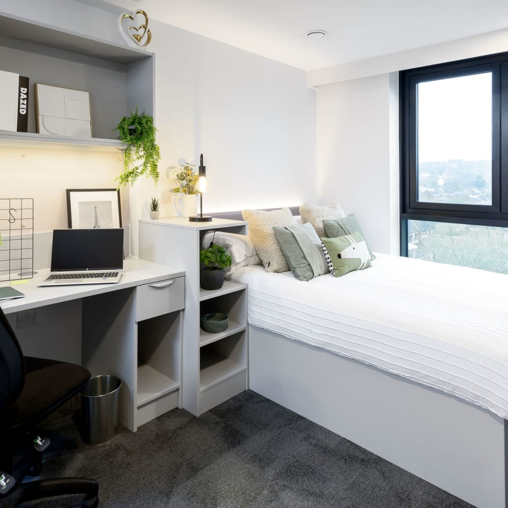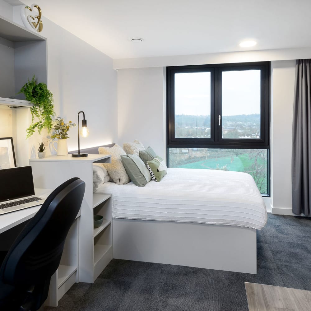Located on our top floors of our Nottingham student accommodation, the Sky Studio Plus rooms combine elevated views with extra space and style. At 21.1 sqm, they’re designed to give you the perfect balance of comfort and functionality throughout your time at university.