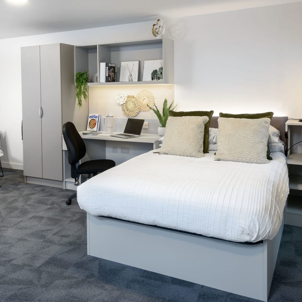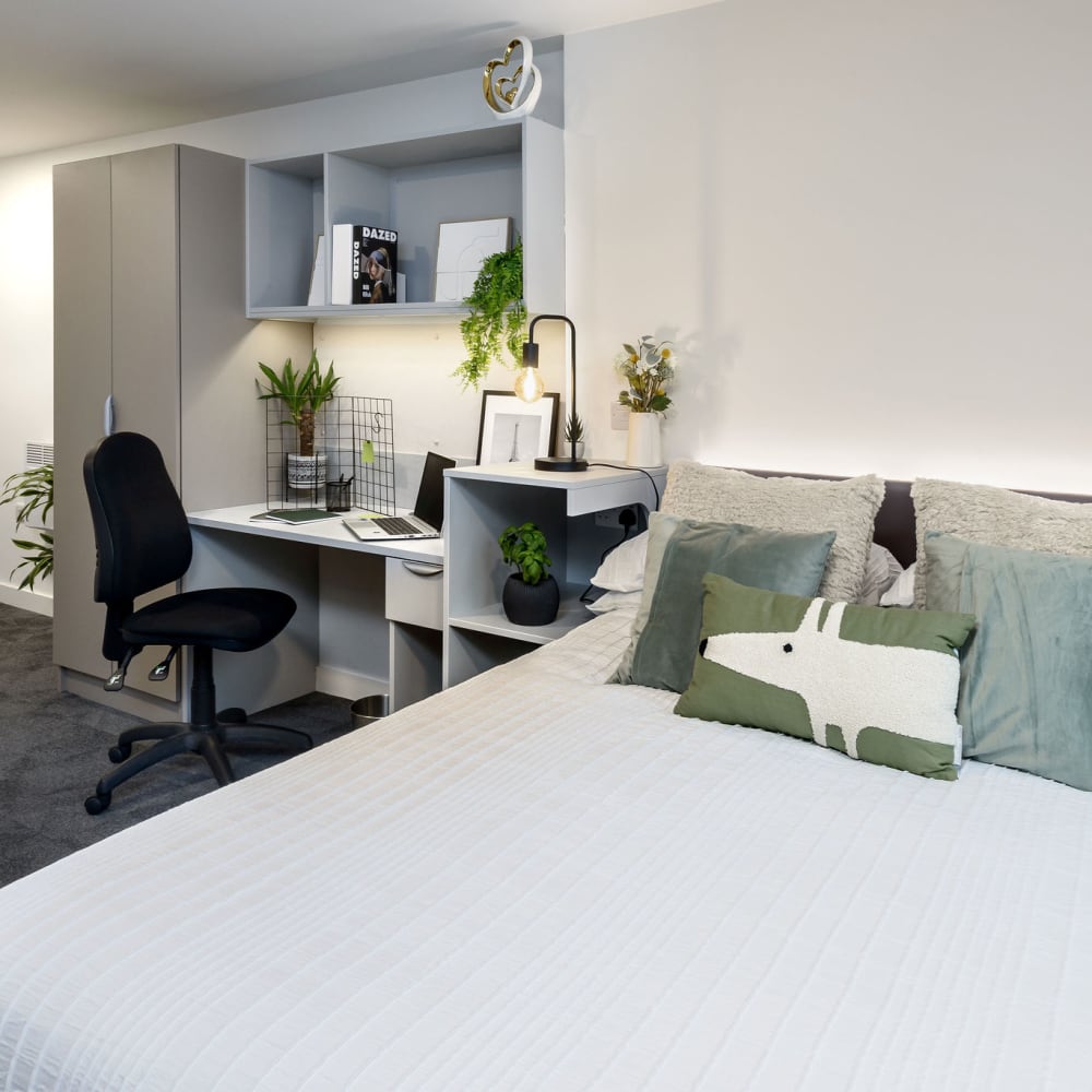 Superior in every way, our Superior Studios at true student's Nottingham accommodation give you the perfect blend of space, style, and comfort. With 24.2–32.7 sqm, these studios are some of the most spacious student rooms available – designed for those who want more from their student living.