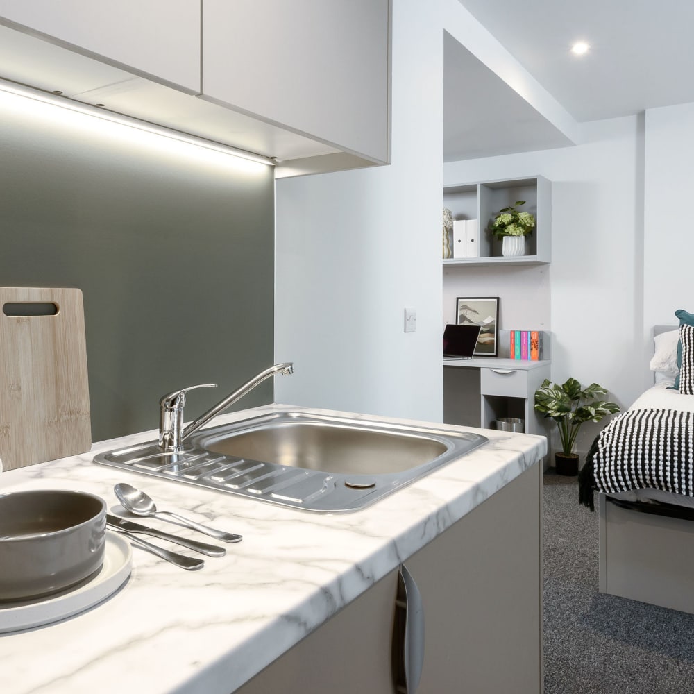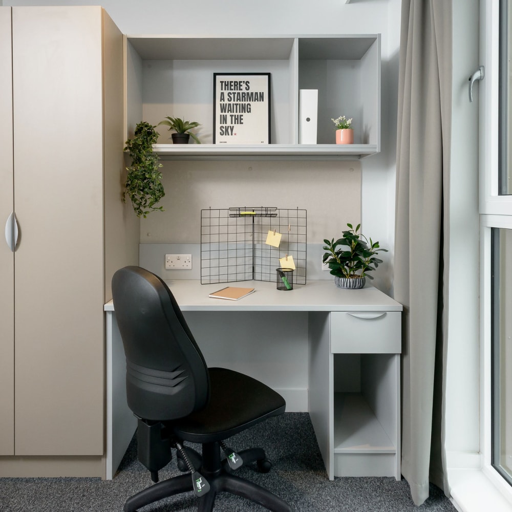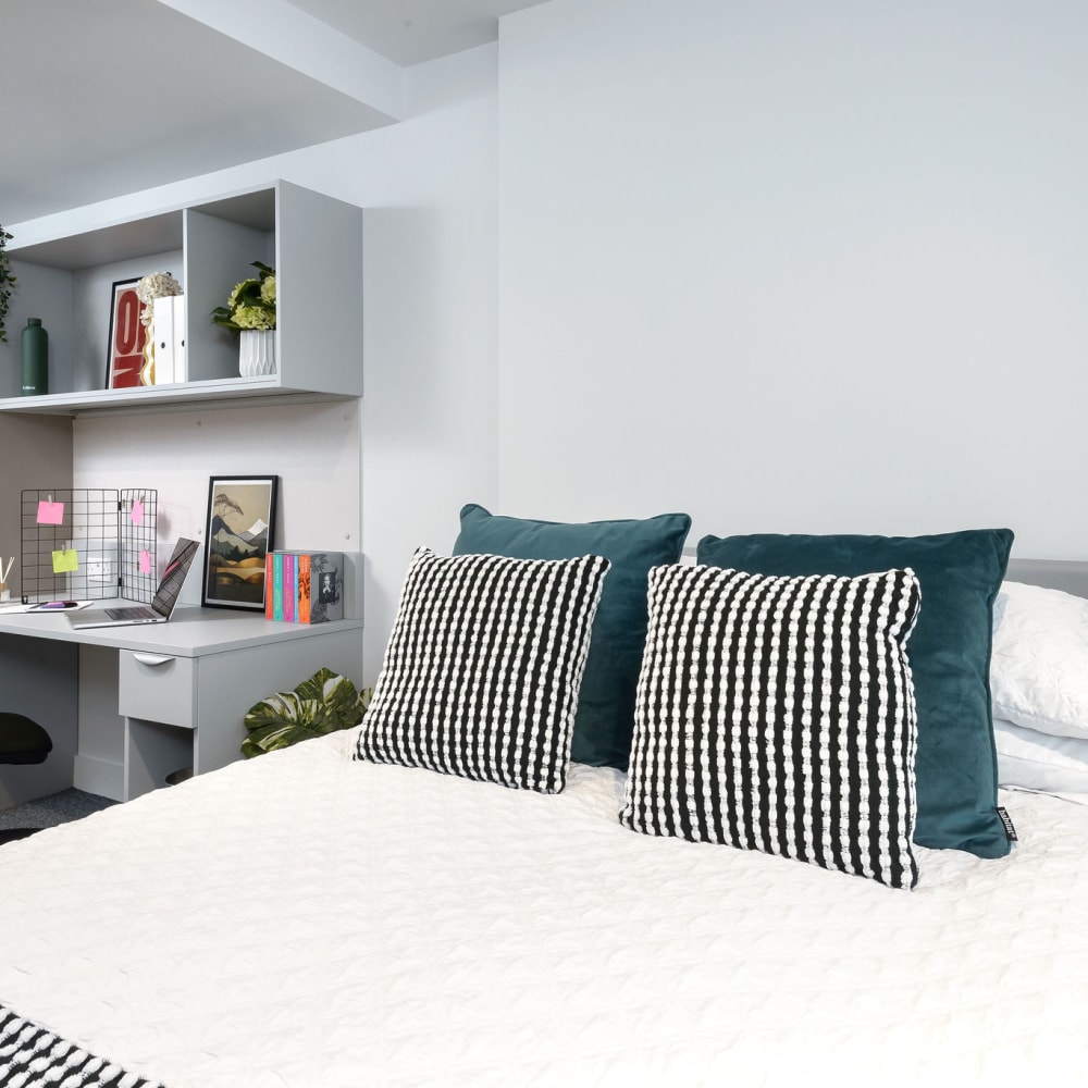 Our private student accommodation in Sheffield is perfect for making a home-away-from-home when moving to university! These studio rooms come fully equipped with a double bed, desk area, en-suite bathroom, and your very own private, fully-fitted kitchenette.
