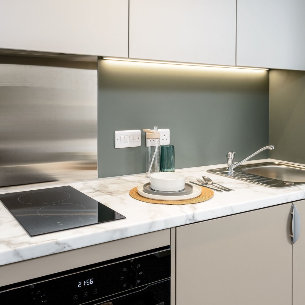 If you prefer a mix of privacy and socialising, an apartment might be the perfect fit. You'll still have your own double bed, en-suite, and study area, but you’ll share a fully equipped kitchen and living space with other students - a great way to meet new people!